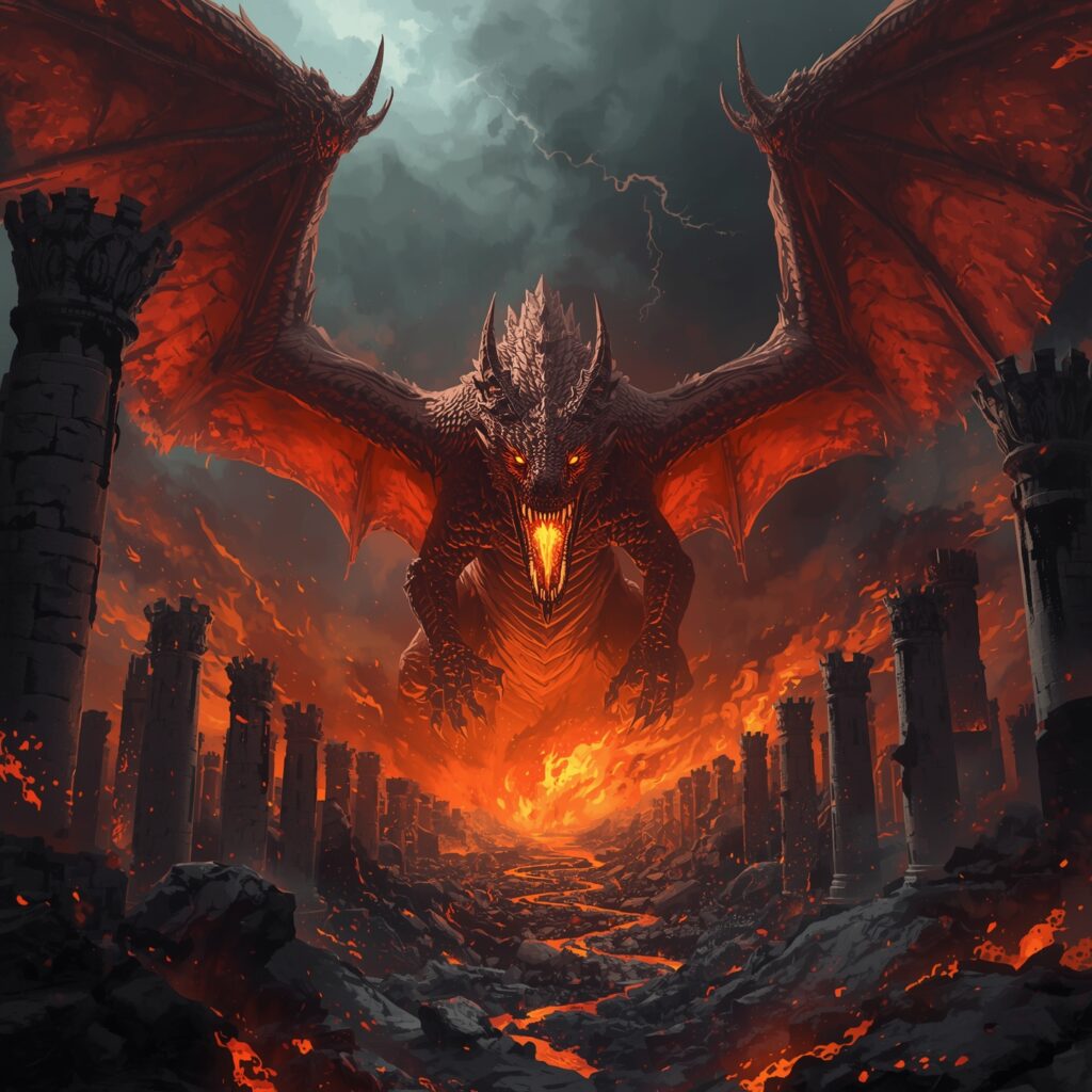 La mala noticia es que justo en ese momento un dragón (¡¡un dragón!!) decidió aparecer y quemarlo todo, incluyendo a los pobres Tyrrell y destruyendo el Dominio, ancestral hogar de los Gardener y granero de todo Poniente.